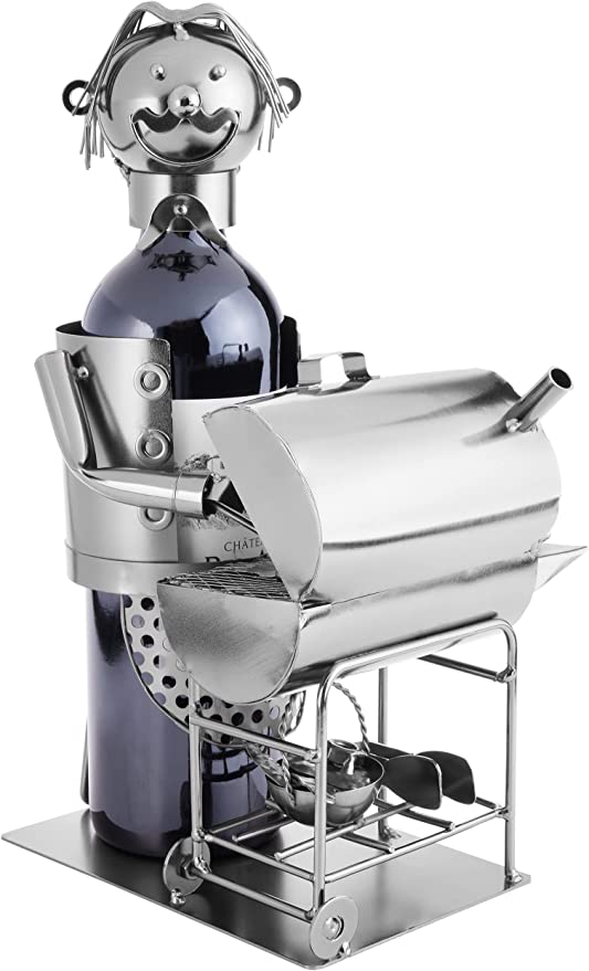 - 🎁 FÜR JEDEN ANLASS – Diese silberne Metallfigur ist die ideale Möglichkeit, eine schöne Weinflasche zu verschenken. Der Weinflaschenhalter ist die perfekte Geschenkidee vor allem für Barbecue Liebhaber. Egal ob zum Geburtstag, zu einer Grillparty, als Weihnachtsgeschenk oder als kleines Geschenk an einen Hobby Griller – inkl. Grußkarte „In Vino Veritas“